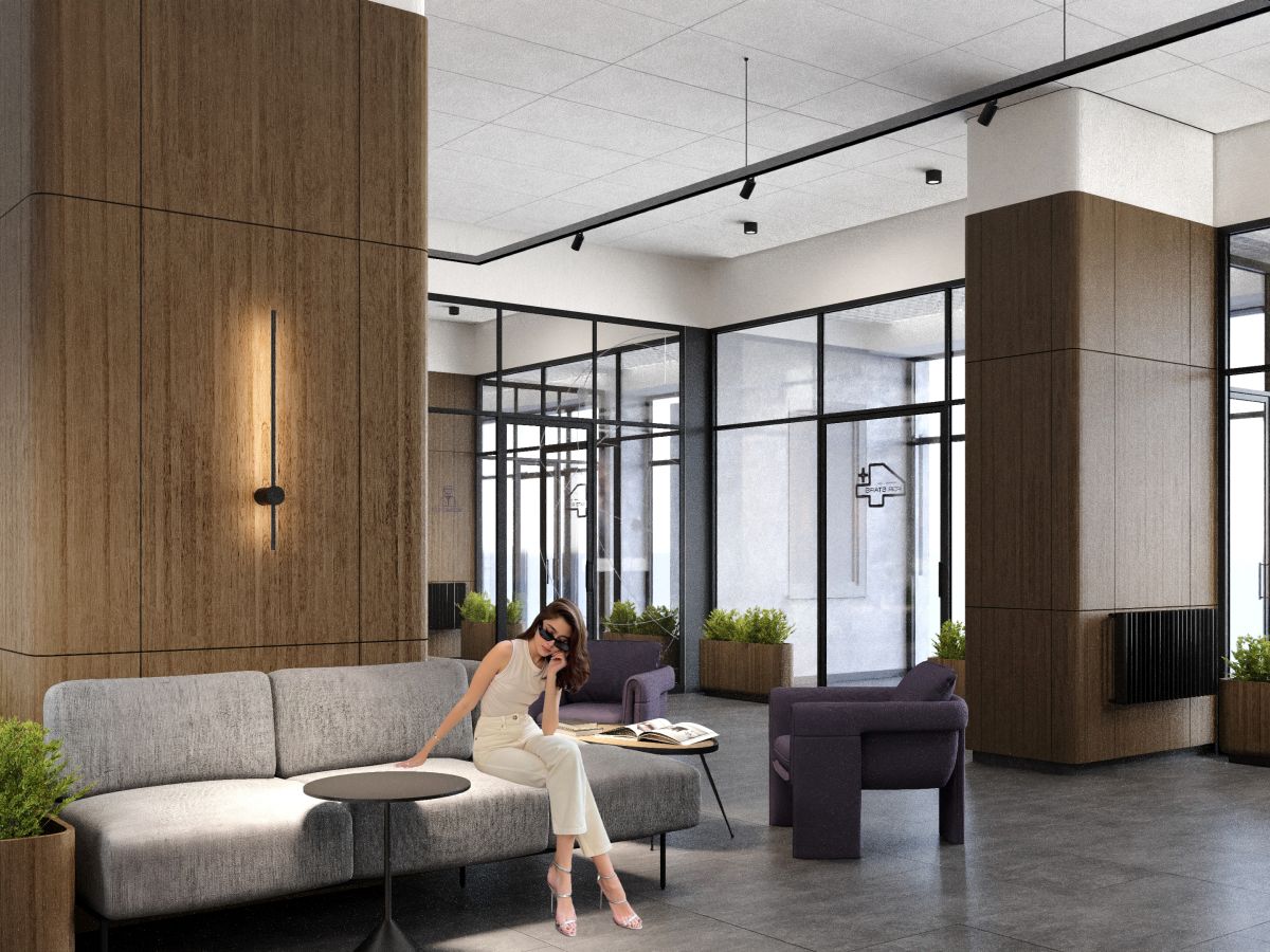 В 24-этажном доме предусмотрены квартиры как для семей с детьми, так и для молодых семей и холостяков. Представлены планировочные решения от 25.78 до 119.38 м2. На первом этаже расположено современное лобби с комфортабельной зоной ожидания, где можно подождать такси или провести деловую встречу. А для удобства родителей в лобби предусмотрена колясочная.
