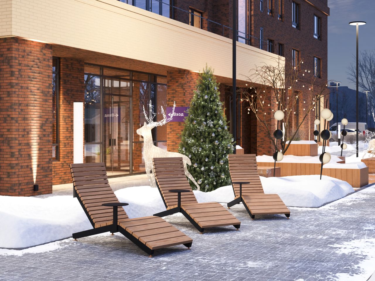В уютном дворе установлены детские и спортивные площадки. А пока дети играют, взрослые могут провести время в зоне отдыха с бесплатным WI-FI, где расположены скамейки и столики. Также на территории имеется велопарковка, а для четвероногих друзей предусмотрена лапомойка.